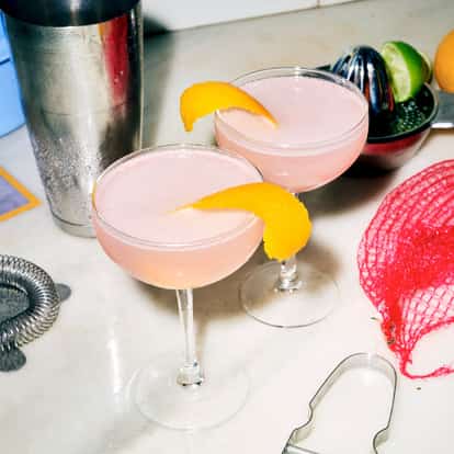 Fülle einen Shaker mit Eiswürfeln. Gib alle Zutaten hinzu, shake kräftig und seihe den Drink in ein Cocktailglas ab. Garniere mit einem Twist Orangenzeste.