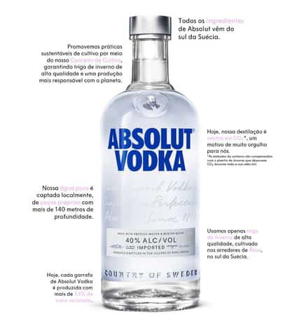 One Source é a nossa filosofia de produção. Significa que a maior parte do nosso processo acontece nos arredores de Åhus, uma pequena vila no sul da Suécia. Todos os ingredientes de Absolut Vodka vêm do sul da Suécia. Cada gota d’água e cada grão de trigo têm uma única origem, mesma fonte e comunidade. É por isso que, não importa onde você esteja no mundo, Absolut terá sempre a mesma qualidade excepcional.